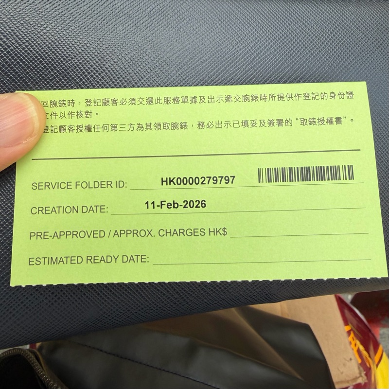 RSC的報價 Get link Facebook X Pinterest Email Other Apps February 26, 2026 25/2終於收到RSC報價維修費用,需換玻璃面及零件,加賣抹油總數$11550!已預約16/3 9:30 去取,非常期待帶上一個行走精準的愛錶! Get link Facebook X Pinterest Email Other Apps Comments